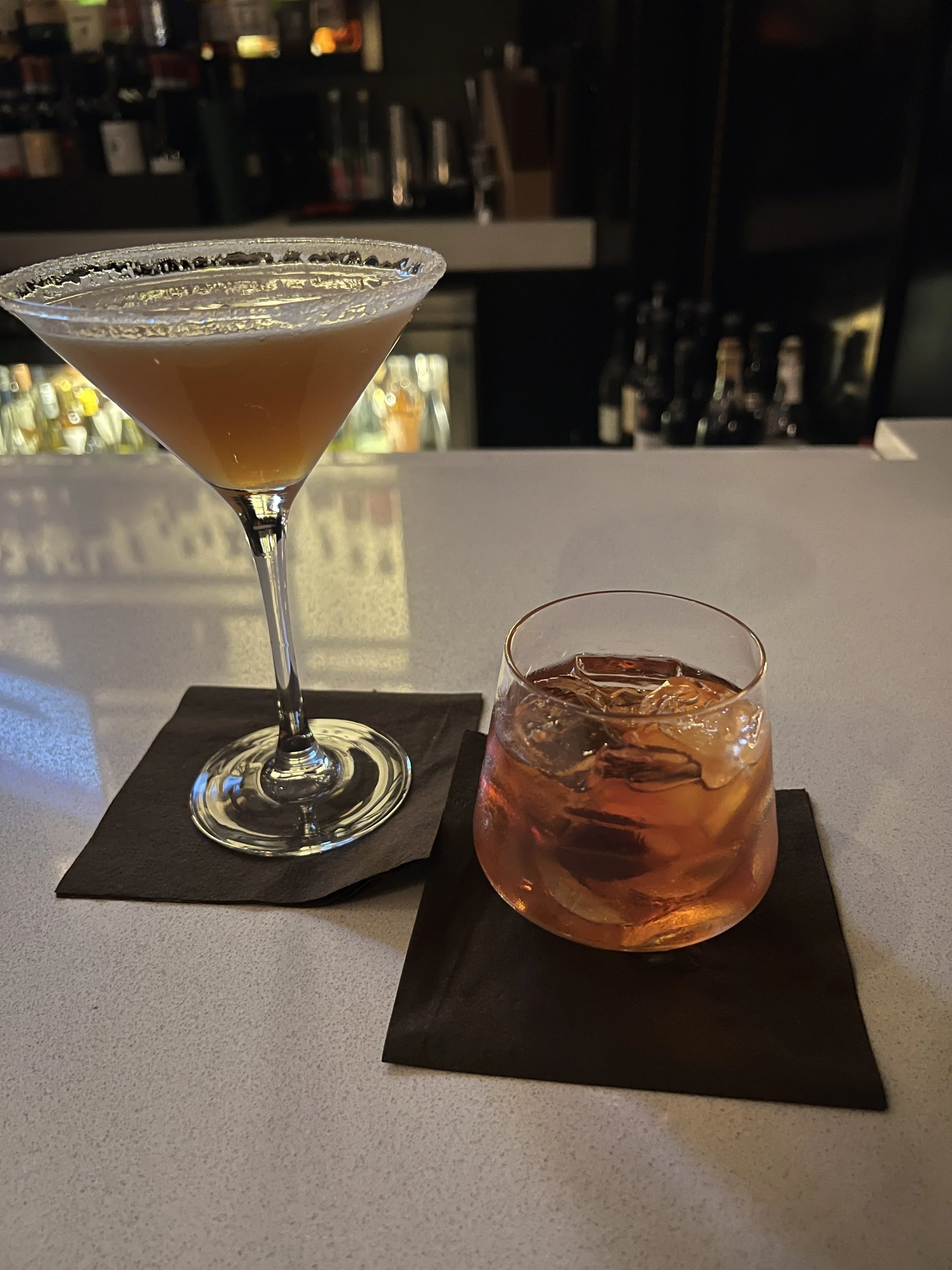 Enjoying a sidecar and old fashioned with my wife.