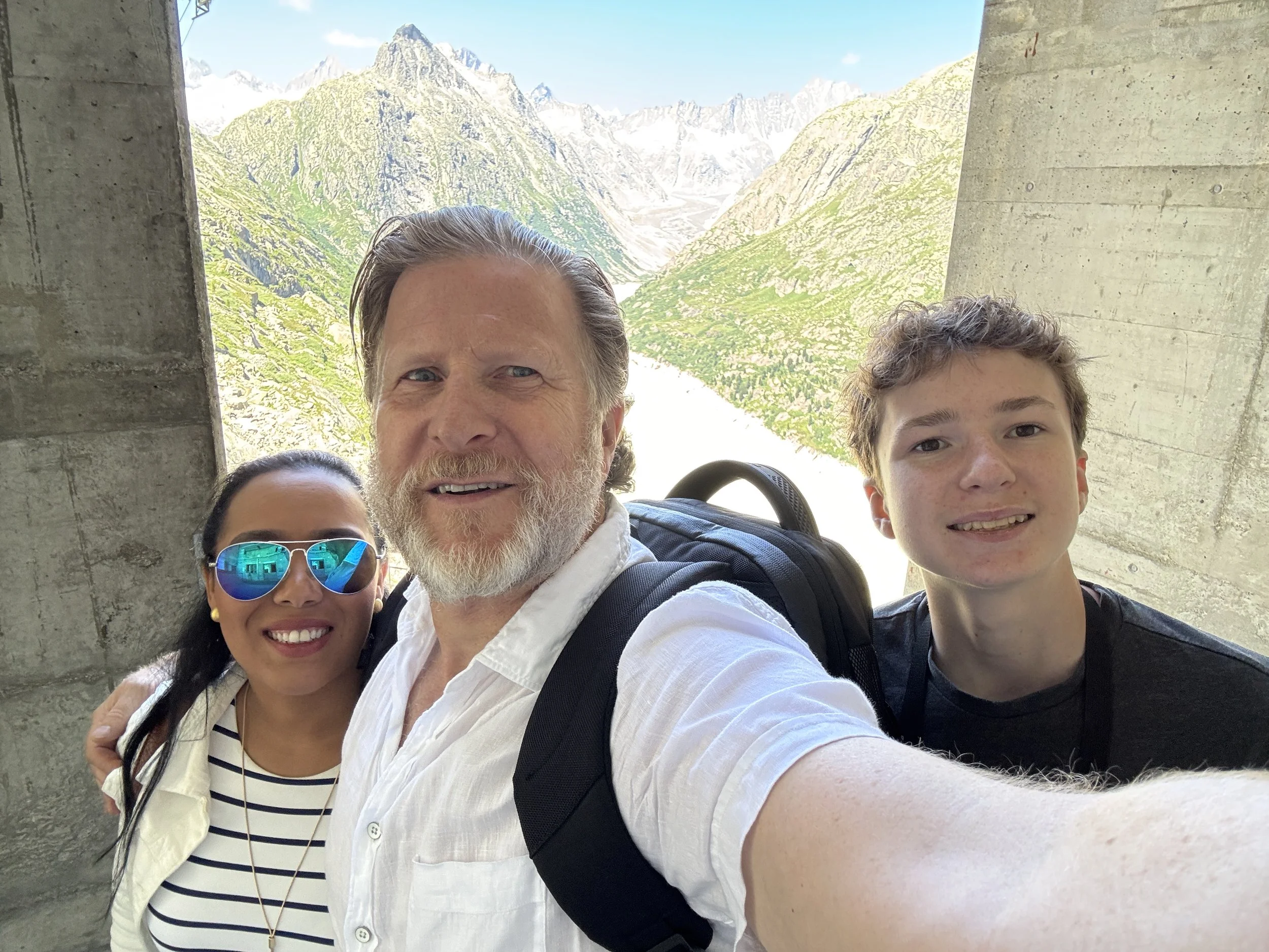 At the midstation gondola at Oberalpsee in Switzerland. We had to cross a vast lake on a glacier with nothing beneath us, and we were the only people for miles. On top of it there was only one gondola car, and it was self-operated.
